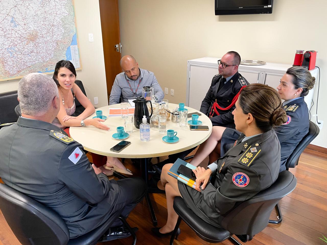 Também estiveram presentes na reunião a Chefe de Gabinete, Tenente Coronel Jordana de Oliveira, a Assessora, Tenente-Coronel Cléia Gonçalves e o Tenente Flávio.